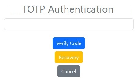 Whenever you need to log into the account, you will start by entering your username and password, like before. Since TOTP is activated, you will need to also submit the code from your Authenticator app. Alternatively, you can submit a recovery code.