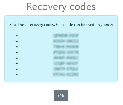 We blurred out the QR code and recovery codes for this tutorial. You will receive dynamically generated versions that will be fully visible to you.